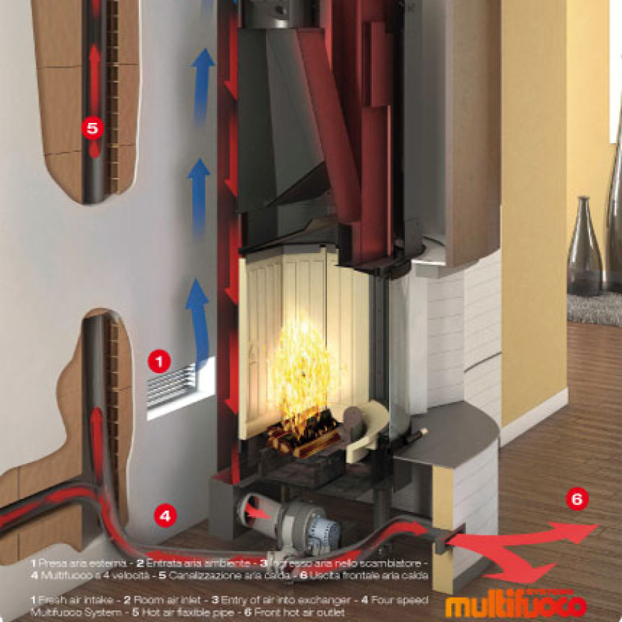 Multifuoco System Plus è un’evoluzione tecnica dello straordinario sistema di ventilazione forzata Multifuoco System dedicato ai prodotti a legna.