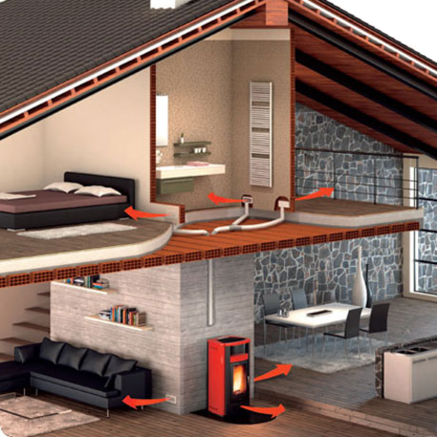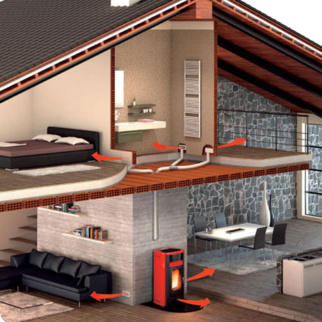 Grazie a un sistema di canalizzazione, si può distribuire il flusso d’aria calda anche in locali lontani o su piani diversi, con la garanzia di avere sempre lo stesso comfort dell’ambiente di
